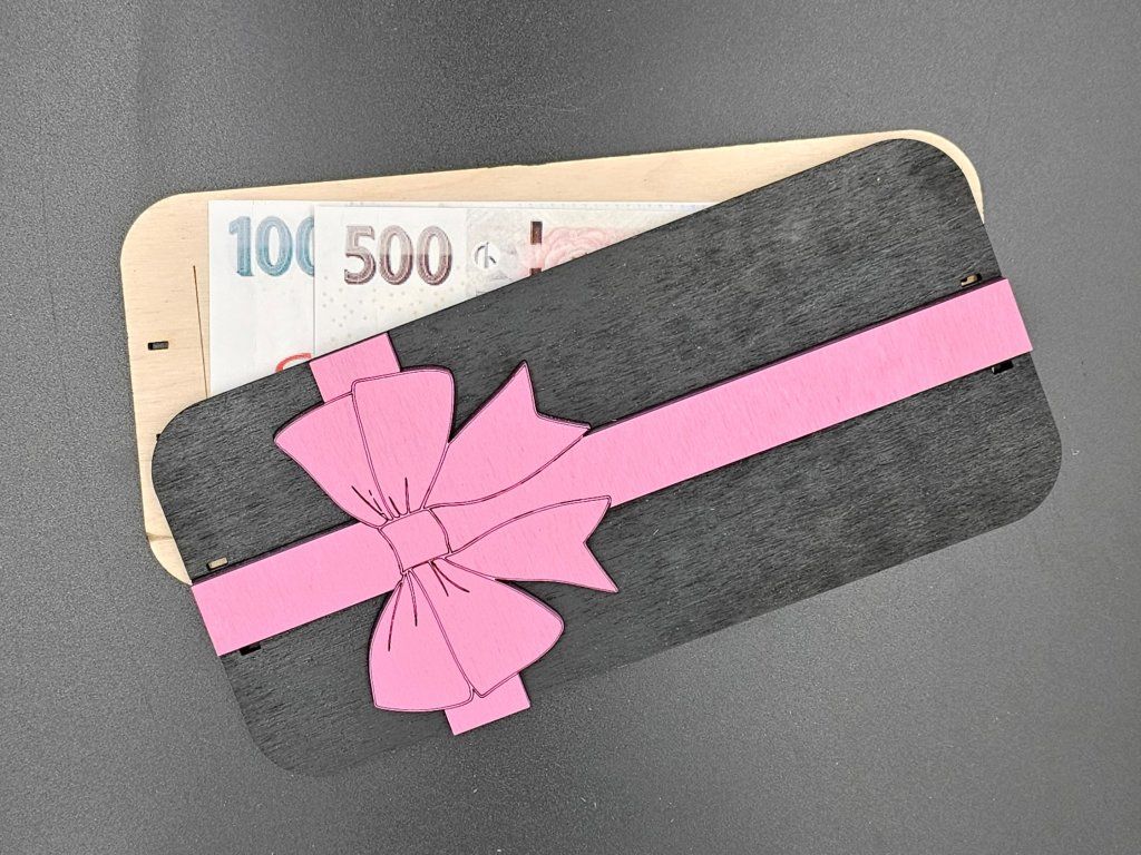Zapomeň na trapné obálky nebo nudné převody na účet. S naší kartou daruješ peníze tak, že to má šmrnc! Stačí vložit obnos mezi jednotlivé části karty a svázat je k sobě růžovou mašlí. Hotovo! Obdarovaný si užije nejen samotný dárek, ale i ten moment překvapení, kdy kartu rozvazuje.