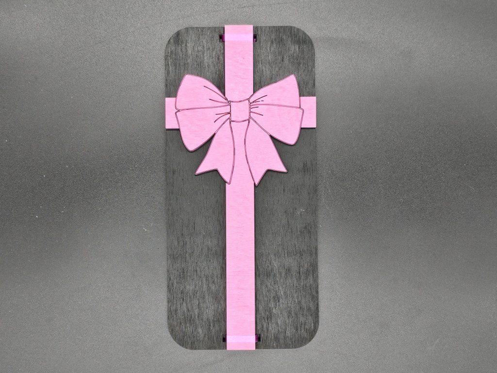 2. Zavaž mašlí – Spoj části karty přiloženou růžovou mašlí přes připravené otvory. Nejen že to vypadá skvěle, ale taky přidáš trochu napětí – co je uvnitř? 🤔