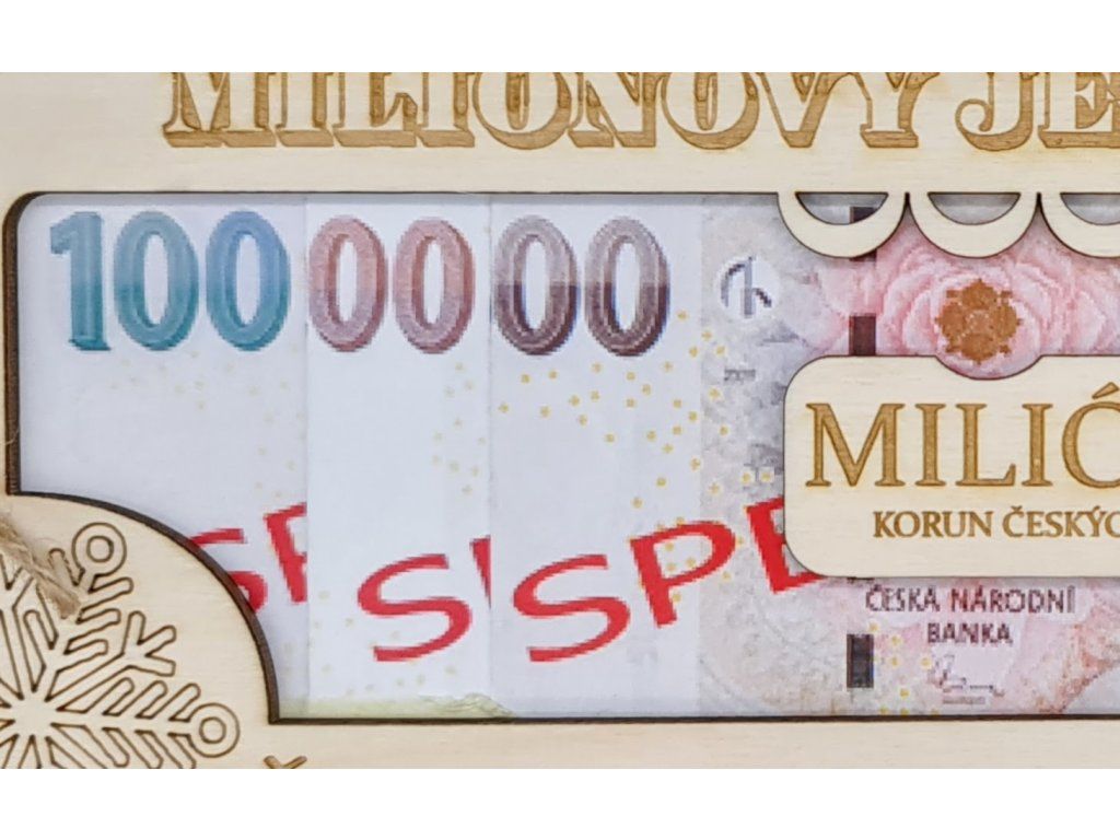 Vyrobená z kvalitní překližky, naše karta je nejen esteticky působivá, ale také ekologická. Ať už je to pro kolegu, přítele nebo člena rodiny, gravírovaný nápis „Milionový Ježíšek“ a vločkový motiv dodají dárku tu pravou sváteční atmosféru. A teď si představte výraz na tváři obdarovaného, když uvidí, jak se před jeho očima z peněz skládá iluze milionu!