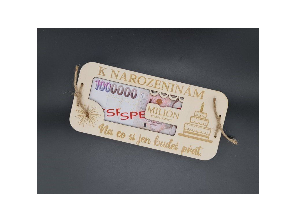 Vyrobená z kvalitní překližky, naše karta je nejen esteticky působivá, ale také ekologická. Ať už je to pro kolegu, přítele nebo člena rodiny, gravírovaný nápis „K narozeninám“ a motiv dortu dodají dárku tu pravou sváteční atmosféru. A teď si představte výraz na tváři obdarovaného, když uvidí, jak se před jeho očima z peněz skládá iluze milionu!