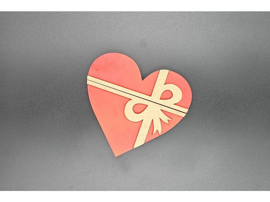 Elegantní Dřevěná Krabička ve Tvaru Srdce se zlatou Mašlí pro Dárkovou Kartu