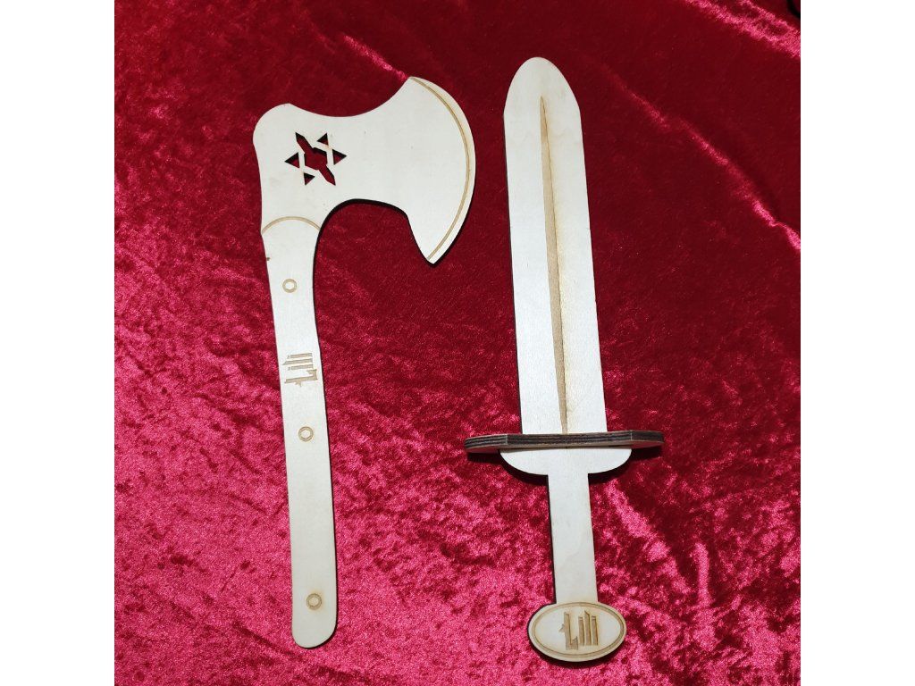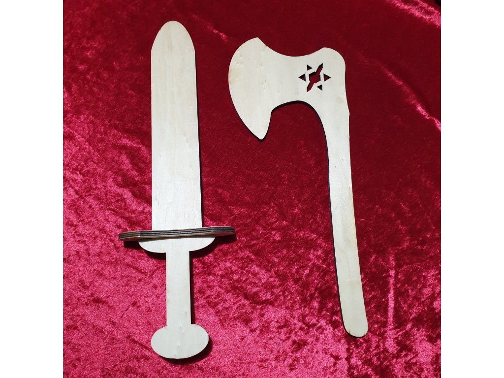 Zbraně jsou tupé a vyrobené z překližky o síle 8mm. Jsou lehké takže se s nimi dokáže ohánět každý prcek.