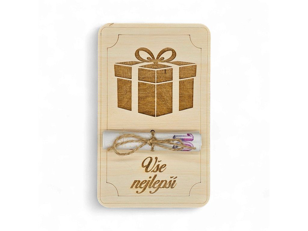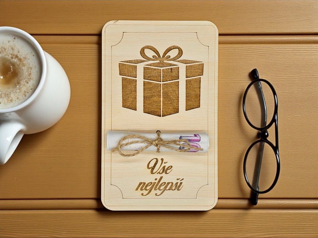 - Dostanete dárek z kvalitního českého dřeva – žádné levné papírové obálky.