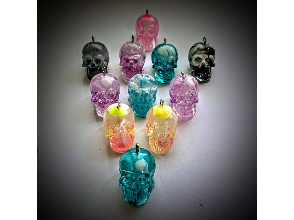 Hledáte klíčenku, která vynikne a pobaví? Naše originální přívěsky na klíče ve tvaru lebky z epoxidové pryskyřice jsou pro vás to pravé! Každá lebka je barevná, průhledná, jedinečná a naprosto nepřehlédnutelná.