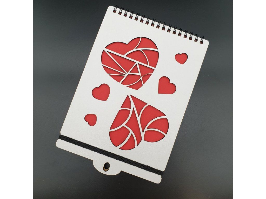 Náčrtník sami vyrábíme technologií laserového pálení, gravírování nebo transferového tisku z pevných MDF desek a vážeme z náčrtkového papíru do kroužkové vazby, která ho drží krásně pohromadě i ve tvé tašce nebo batohu či kabelce.