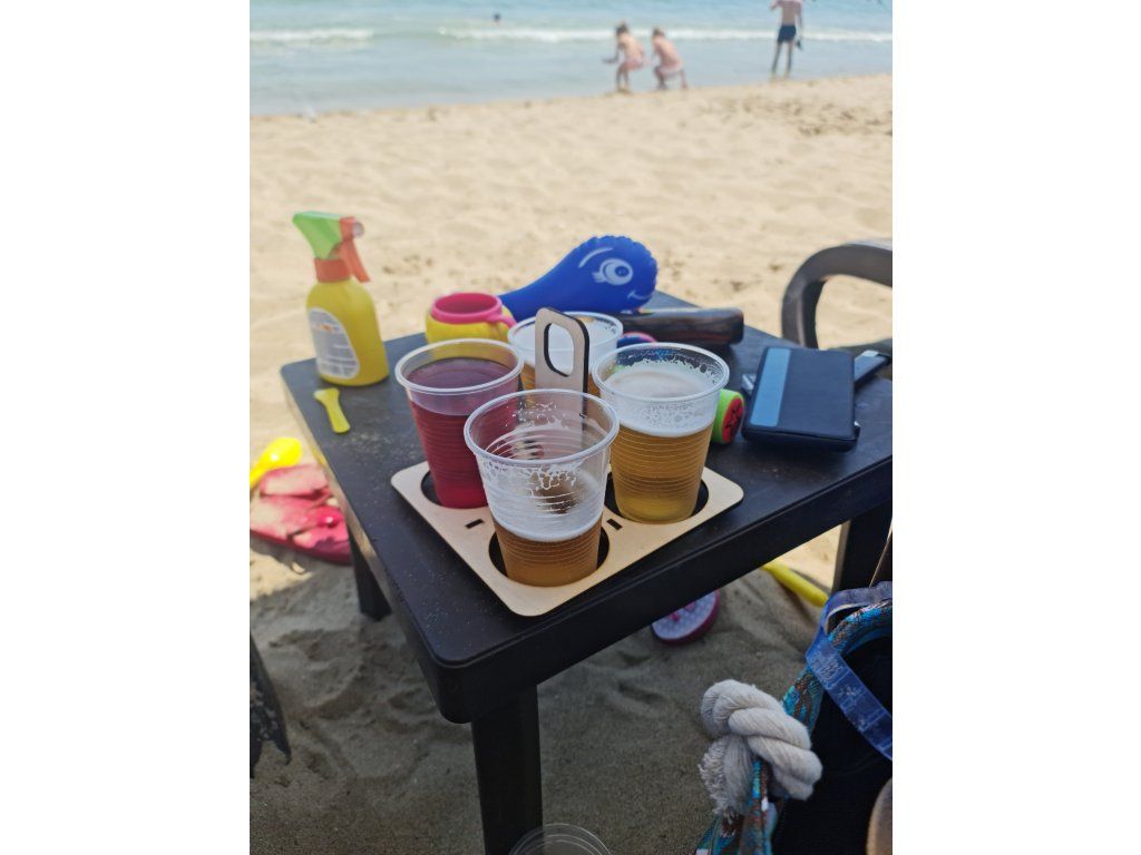 Náš tým skvělých vědců využil technologii laserového pálení, aby vytvořil tento revoluční nosič kelímků pro ty co si chtějí užít pláž a moře a nechtějí pořád běhat na bar.