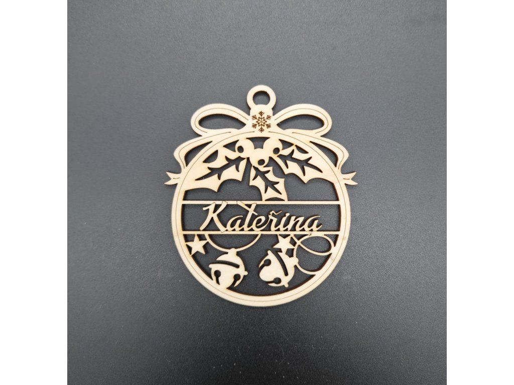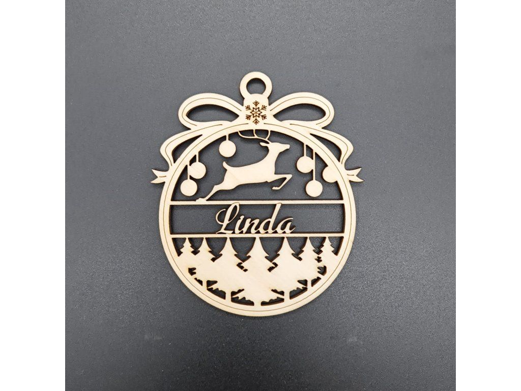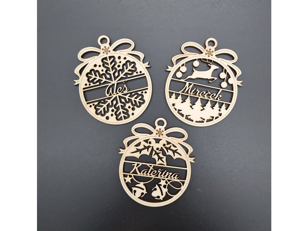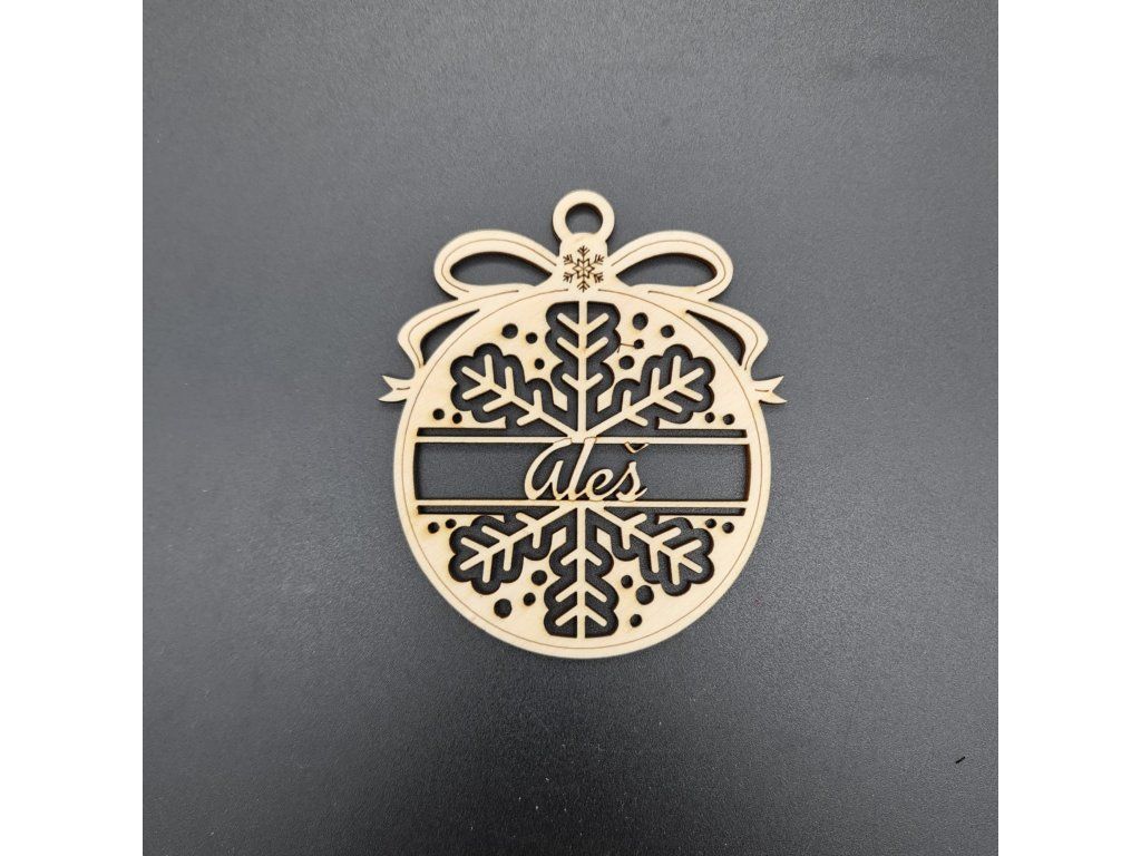 Baňka z dřevěné překližky s vánoční tématikou. Do poznámky vlož jméno/a která chceš mít v baňce.