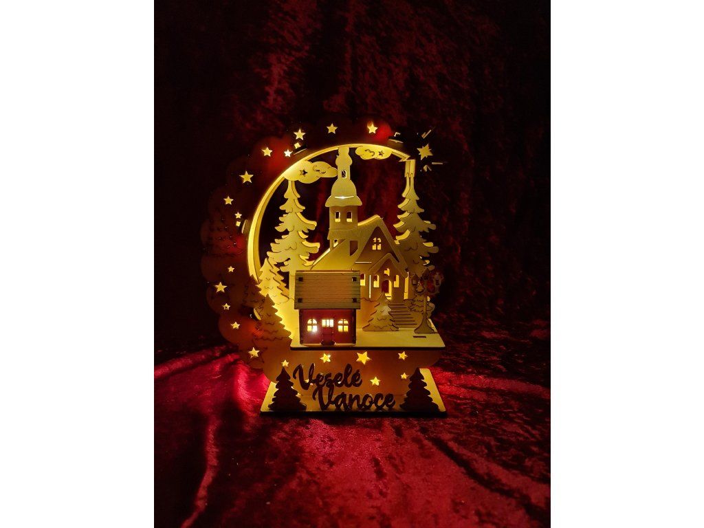 Ručně skládaná a osvětlená dekorace s motivem kostela a chaloupky. Dodá vašemu pokoji to pravé předvánoční kouzlo a vytvoří nádhernou atmosféru.