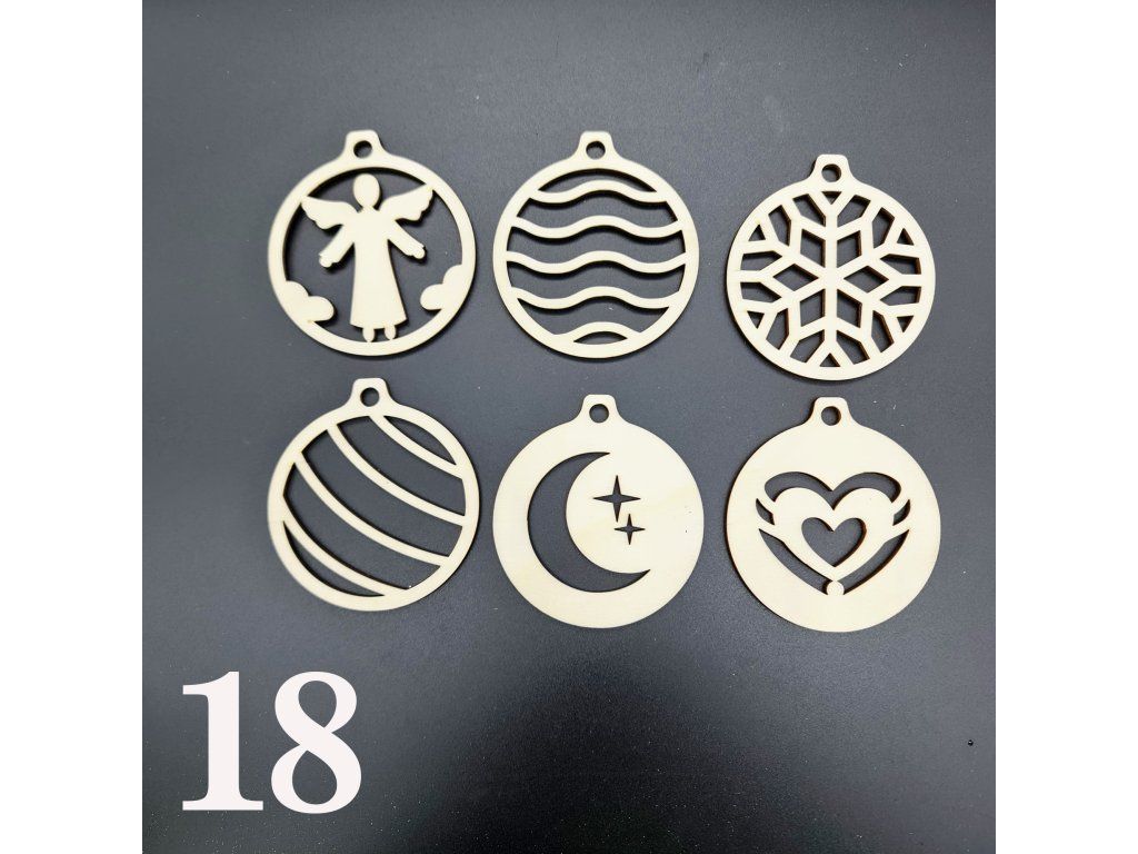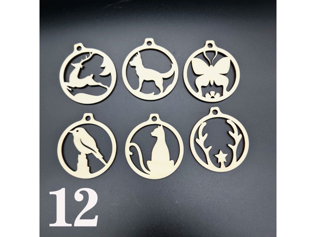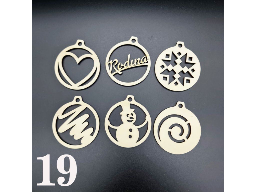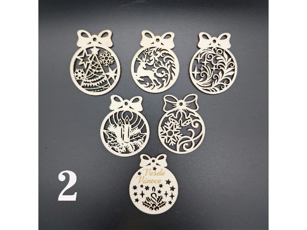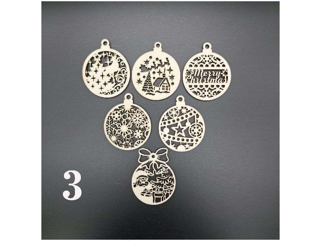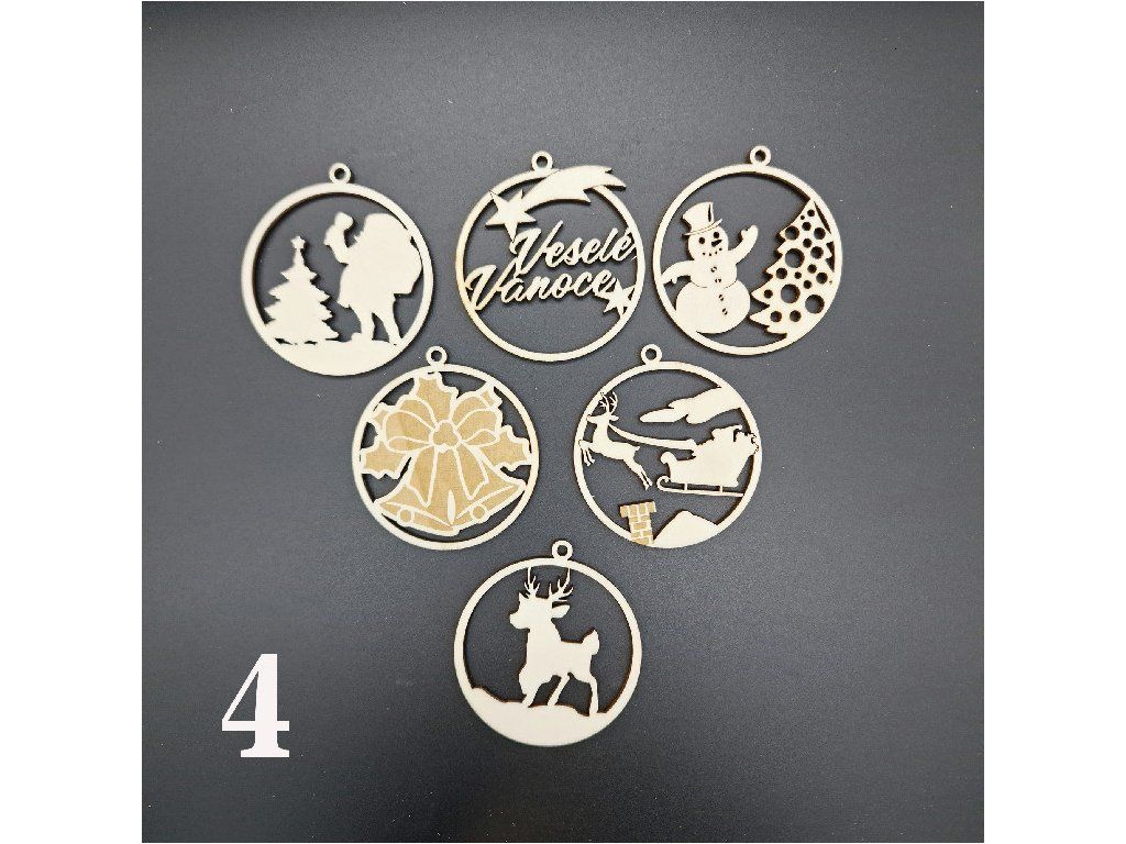 Ozdoby z dřevěné překližky s vánoční tématikou. V sadě je 6 kusů. A na výběr máš z několika variant.