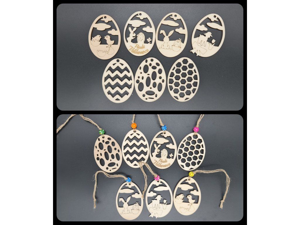 🎨 7 kusů vyřezaných dřevěných kraslic – precizně zpracované, s láskou vyrobené a připravené na tvoření.